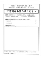 市民、利用者の皆様の御意見につきましては、担当までお寄せください。お寄せいただいた御意見は、見直しの参考とさせていただきます。